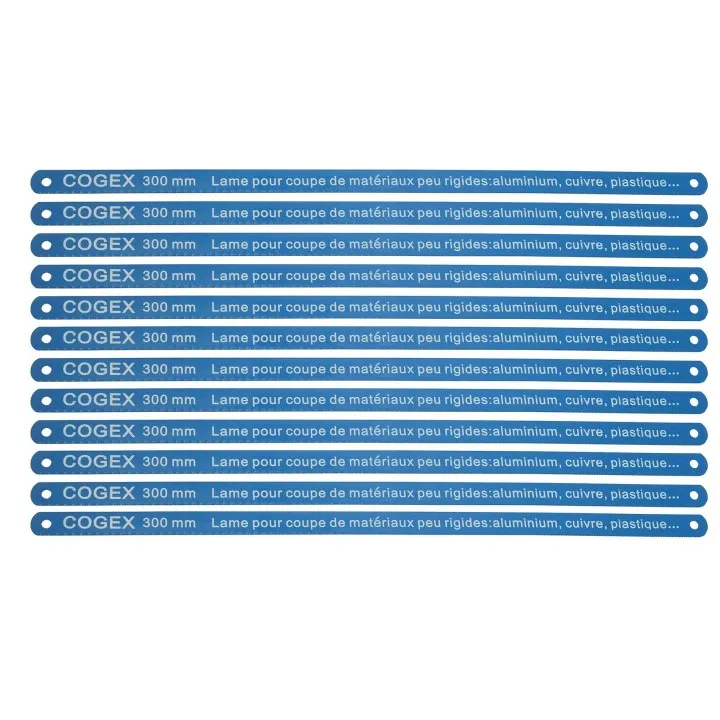 Lot de 12 lames de scie à métaux de 30 cm pour une coupe précise et efficace des matériaux métalliques.