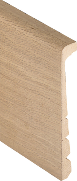 Plinthe en MDF recouverte d'un papier très résistant qui permet de faire une finition sans avoir à déposer la plinthe en place. Hauteur totale 13 cm. Longueur 2.20m.