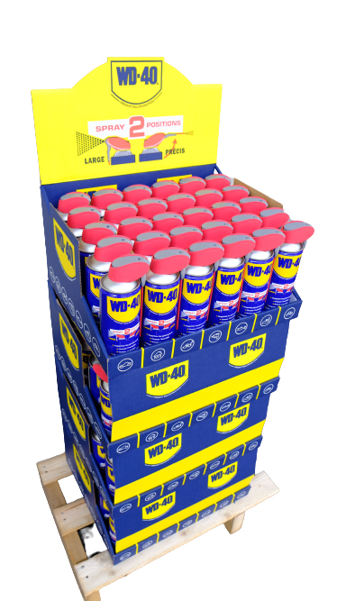 Ce box palette comprend 120 produits multifonction spray double position 400ml WD-40.