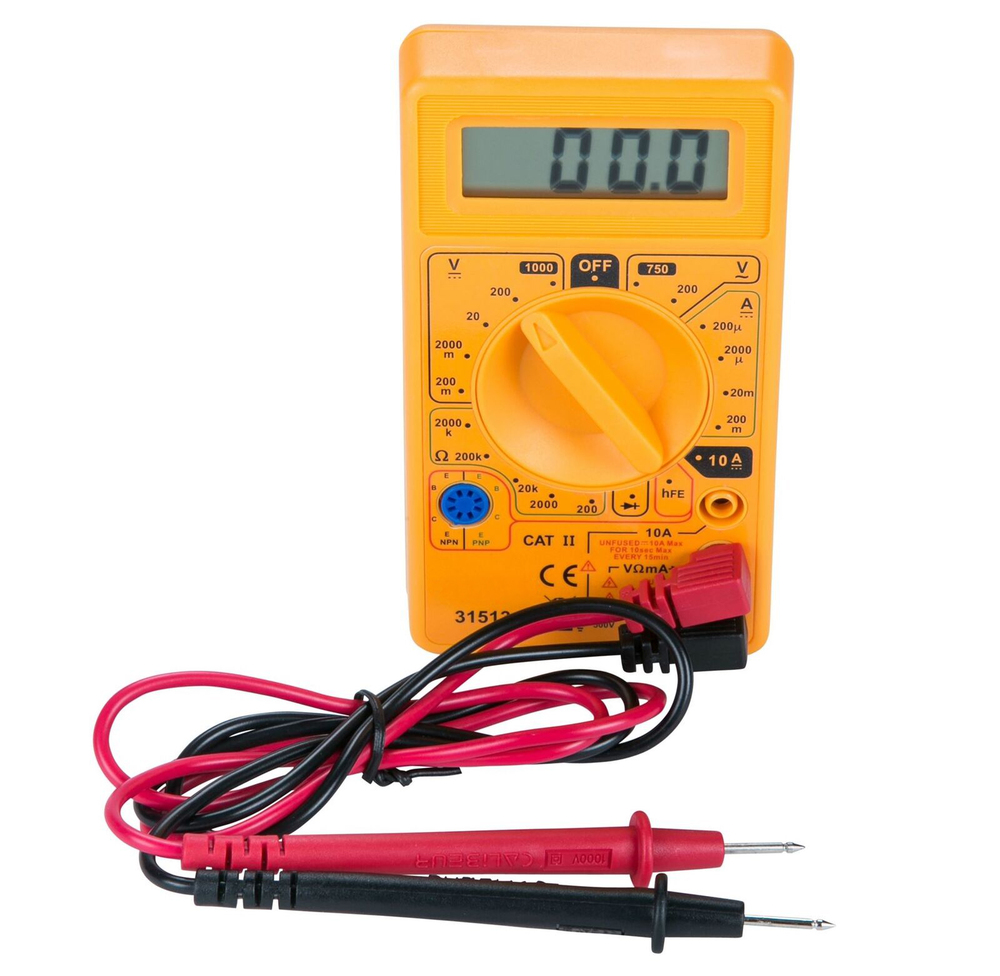 Multimètre de petite taille, pratique pour la mobilité, capable de mesurer la tension AC/DC, le courant DC, la résistance, les diodes et le hFE. 2.