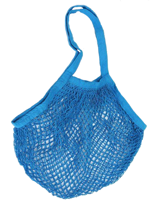 Sac à provisions en coton bleu turquoise tricoté maille filet.