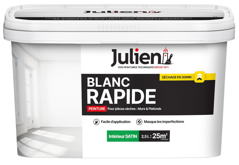 Optez pour le Blanc Rapide Satin de Julien et profitez d'une solution de peinture de qualité pour transformer vos intérieurs.