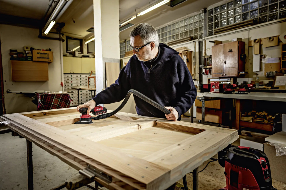 Son plateau abrasif velcro à 10 trous et son système d'aspiration intégré avec sac, ou raccordable à un aspirateur externe, garantissent un travail propre.