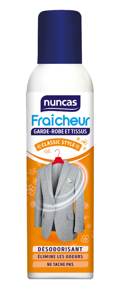 Spray désodorisant conçu spécifiquement pour rafraîchir tous vos vêtements avant de les ranger dans vos placards. Il est idéal pour éliminer toutes les odeurs persistantes qui imprègnent les tissus : fumée, aliments, odeurs de renfermé. Sa formule à sec ne laisse aucune trace sur les tissus et garantit une action efficace en respectant les textiles délicats.