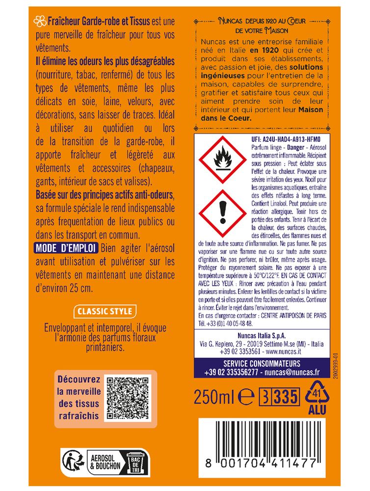 Désodorisant Fraîcheur Garde-Robe et Tissus 250 ml