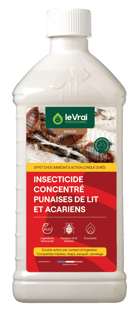 Éliminez efficacement et durablement les punaises de lit et les acariens avec cet insecticide concentré.