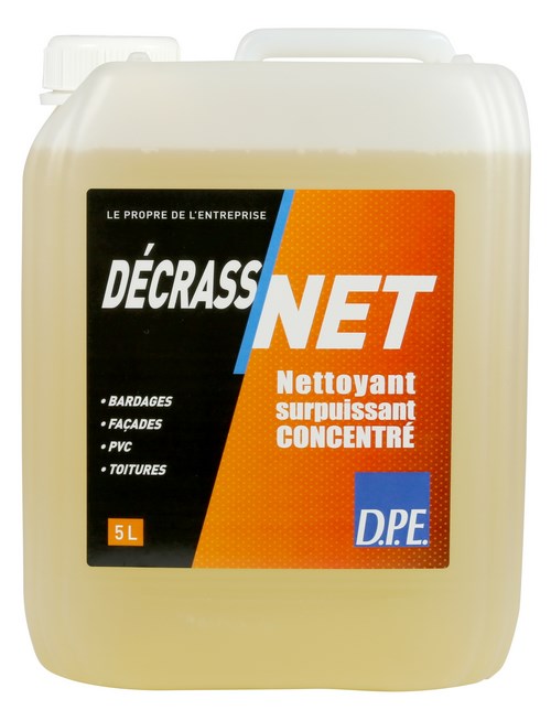 DECRASS'NET est un nettoyant dégraissant concentré, polyvalent, surpuissant, économique pour des travaux d’extérieur comme le nettoyage de bardages métalliques,