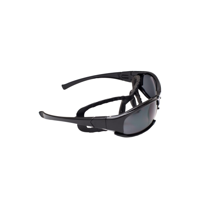 Lunette anti impact, filtre solaire polarisé industriel avec mousse intérieure amovible et branches interchangeables avec bandeau. Traitement anti buée et anti rayures. PC. Norme EN 166 - EN 172