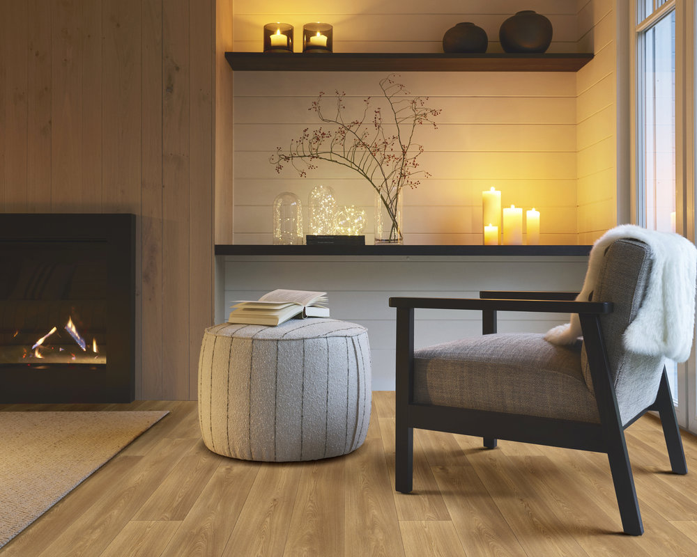 Ce sol lumineux et épuré transforme chaque intérieur en un espace cosy.