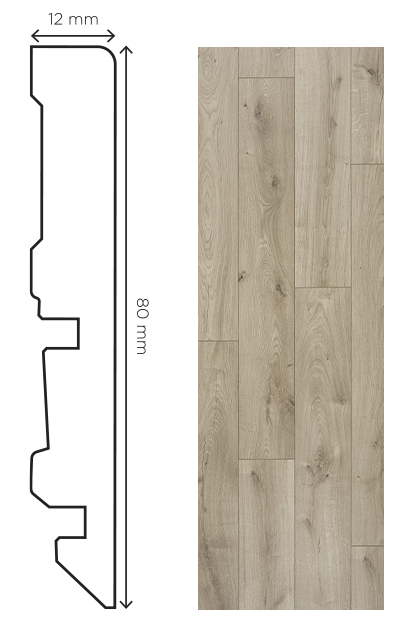 Plinthe de 80 mm de hauteur assortie aux revêtements de sols stratifiés de la collection Elan.