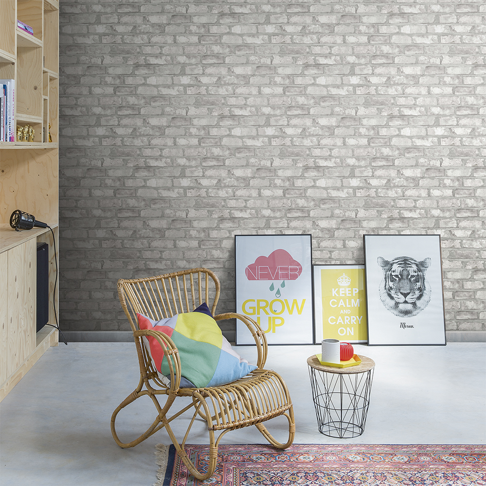 EW3104 Vinyle Grainé sur Intissé Briques Blanches et Grises