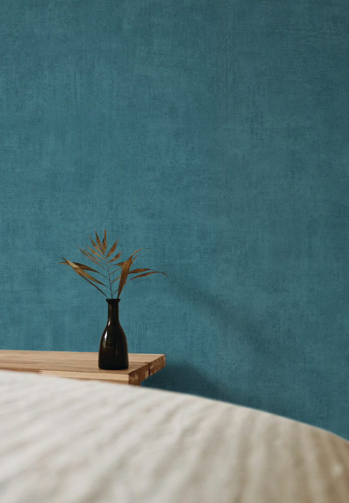 Papier Peint Vinyle grainé sur Intissé Uni patine pétrole. Vendu au rouleau. Pose facile. Lavable. 1005cm x 53cm.